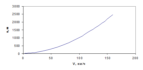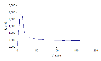 времени торможения от скорости t=f(V) (рисунок 4.2) и замедления от средней