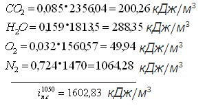 =35990∙0,939+63710∙0,026+905504∙0,001+117960∙0,001+145060∙0,003=35976,91кДж/м