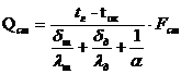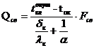 количество тепла, теряемое теплопроводностью через кладку Qтепл, кВт, находим по формуле (74)