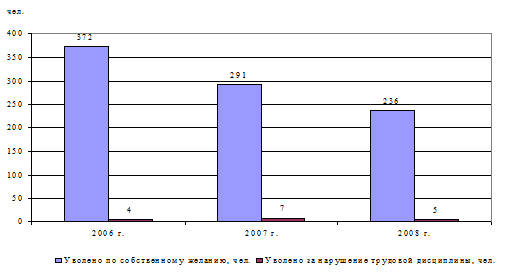 число увольнений работников как по собственному желанию, так и за нарушение