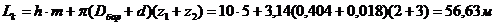 где t - шаг навивки, t = 22,58 мм- число слоев навивки,