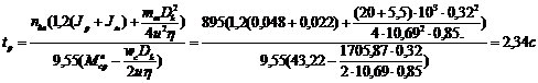 Jм=0,22 - моменты инерции ротора и соединительных муфт на валу