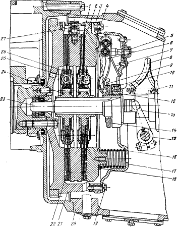 первичному валу коробки передач. Нажимное устройство (12 нажимных пружин)