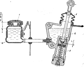 рычаг: 7-пружина упорного кольца; 8-шланг смазывания муфты; 9-петля пружины;