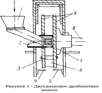 лопастями быстро вращающегося ротора дробеметного аппарата. В качестве