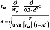 - диаметр в опасном сечении;