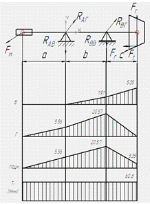 По данным в таблице 18 строим эпюры изгибающих моментов и крутящего