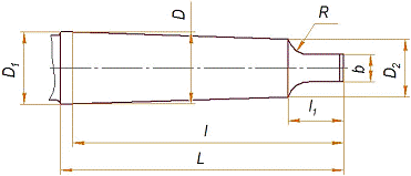 31,267 [мм]; D1 = 31,542 [мм]; D2 = 25,154 [мм]; L = 123,0 [мм]; ℓ1 = 24 [мм]; R = 9 [мм]; ℓ = 117,7 [мм]; b = 11,9 [мм]; конусность 1 : 19,254; α