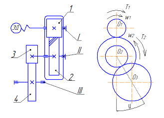 и 4 - шестерня и колесо открытой прямозубой передачи;