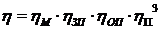 где ηМ - КПД муфты, принимаем ηМ=0.98; ηЗП - КПД закрытой передачи, принимаем ηЗП=0,98; ηОП - КПД открытой передачи, принимаем ηОП=0.96; ηП - КПД, учитывающий потери на трение в подшипниках,
