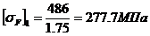 - допускаемый коэффициент запаса прочности,