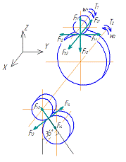 На рисунке индексом 1 обозначены силы, относящиеся к левому подшипнику,