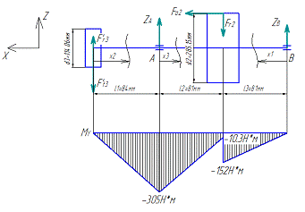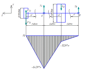 индексом 2 - силы, относящиеся к правому подшипнику.