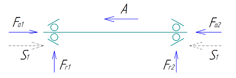 нагрузки на подшипники. Изобразим схему для определения осевых сил в