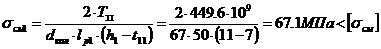Рассчитаем коэффициент запаса прочности по касательным напряжениям: