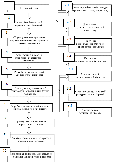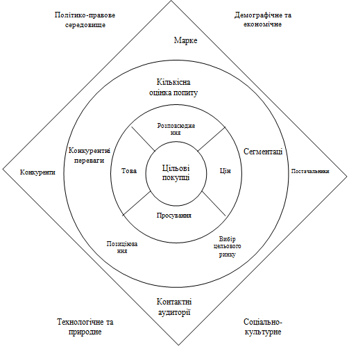 маркетингу, стратегія і тактика маркетингу, організаційна структура управління,