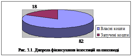 фінансування; залучення позикових та використання власних коштів, пр.),