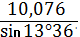 γ2 = arcsin (hu/r2) = arcsin 0,1337 = 80.