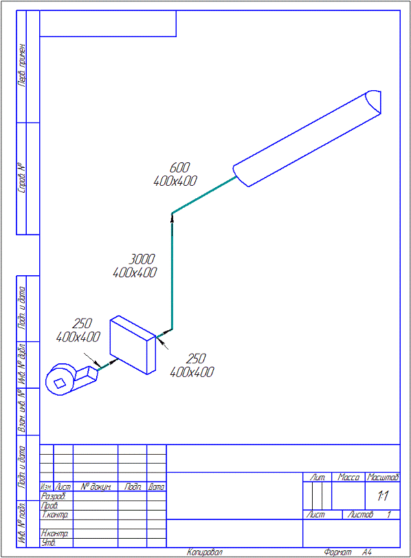 составить её схему (рисунок 1). На этой схеме указываются сечения воздуховодов