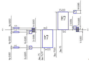 масштабі схеми розташування полів допусків на вали і отвори для кожної посадки.