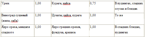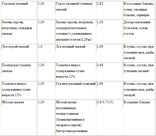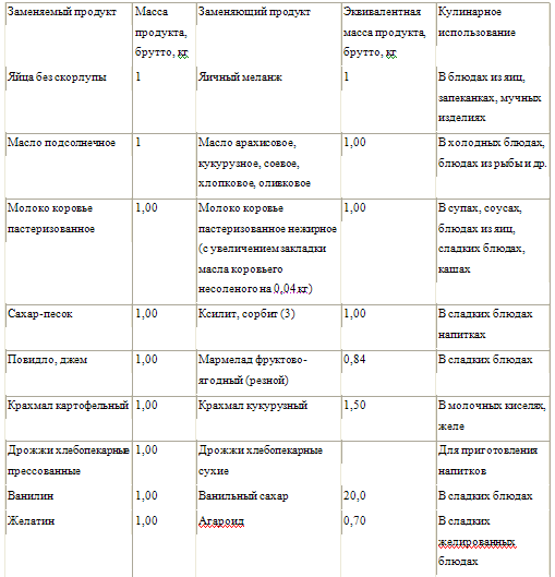Таблица взаимозаменяемости продуктов при приготовлении блюд и изделий