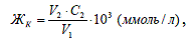V - объем 0,01 н раствора перманганата калия, пошедший на