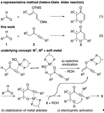 синтез энантиомерно обогащённых дигидропиранонов. Продукты получаются в два