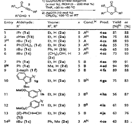 также способствовал окси-реакции Михаэля, но скорость реакции была ниже, чем с AgOTf