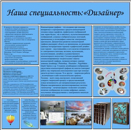 Разработка и создание оригинал-макета стенда для образовательных учреждений в рамках специальности 'Дизайн в полиграфии'