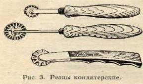 приспособлениями: фигурными резцами, скалками-делителями (с острыми кольцами),