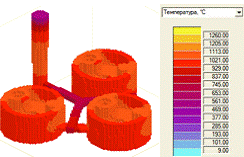 температуры отливки после заполнения формы, а также возможные узлы подверженные