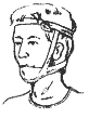 Бинт уходит под правый бинт-основание со стороны лица, затем поднимается вверх