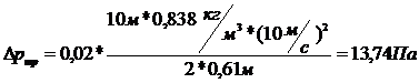 Рн=317,4 Па (таб. 2.5);