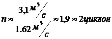 где Vг- объемный расход газов в системе пылеулавливания; в1II- коэффициент запаса, учитывающий