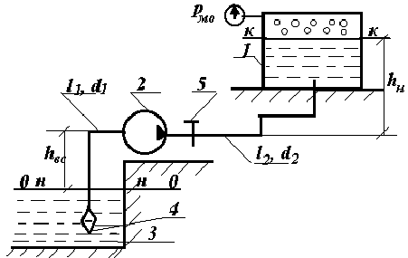в цилиндрический напорный резервуар 1. Жидкость поступает в насос через