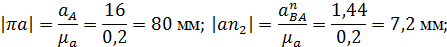 коэффициент длины μl = 0,01 м/мм и вычисляем длины отрезков на