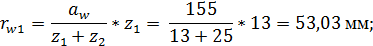 Предположив, что модуль колес m = 8 мм, вычисляем радиусы