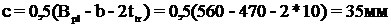 Тогда b1=0,5(b1-ts)=0,5(360-10)=175мм