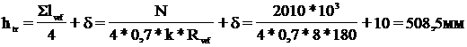 Принимаем htr=500мм