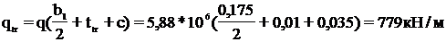 Нагрузка на единицу длины ребра: