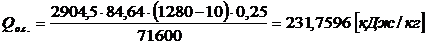 Теплота сгорания топлива: Qрн=34393,95 кДж/м3