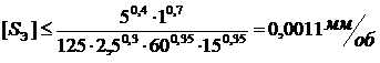 При S = 2,6 мм/об и m = 5,5 мм принимаем скорость резания V = 26,5 м/мин.