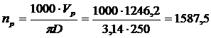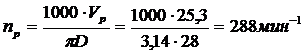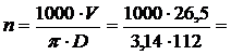Число оборотов фрезы в минуту: