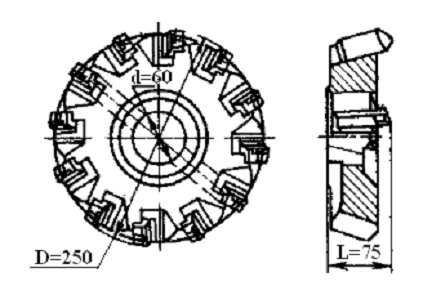 характеристики фрезы [1, с. 193]: d0 = 112 мм, d =