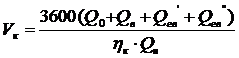 Для КК: Vкк=(3600∙(4337,1+520,4+881,7))/(0,8∙36828,65)=701,3
