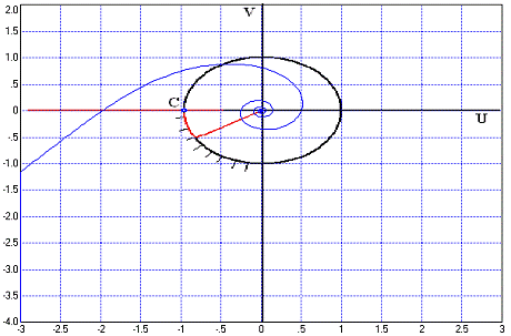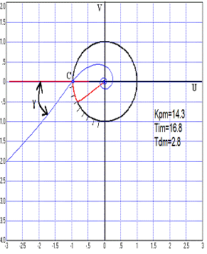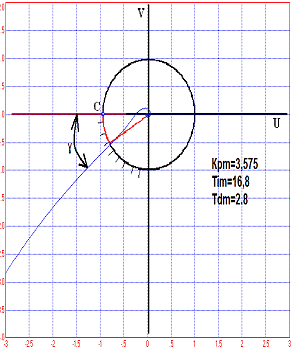 Рис. 4.2.4 График АФЧХ разомкнутой САР для значения Кpm=7,15 и
