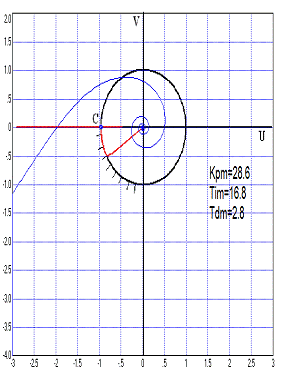 Рис. 4.2.2 График АФЧХ разомкнутой САР для значения Кpm=28.6 и