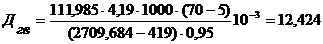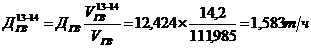 ΔB =20950/(40,28*103*0,858)=20950/34560,24=0,606м3/ч
