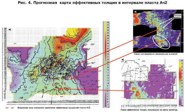 карту общих толщин интервала Ач3 получена прогнозная карта песчанистости.