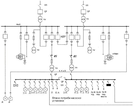 живлення насосної станції, вибирається мережа живлення окремих споживачів, усі